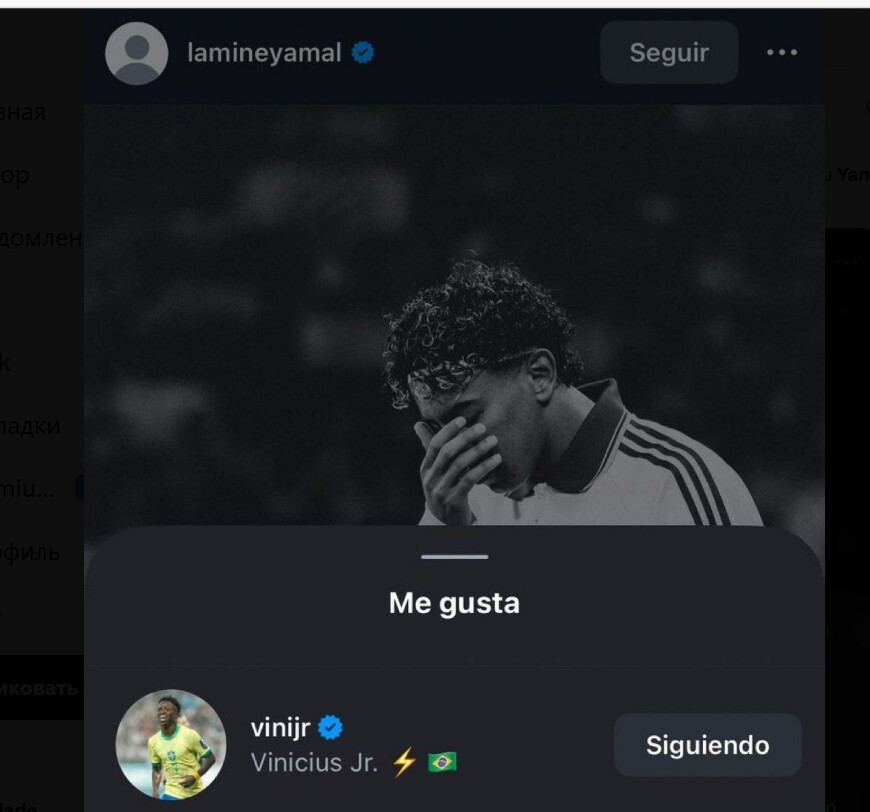 وتضامن فينيسيوس جونيور، نجم ريال مدريد والمنتخب البرازيلي، عبر وضع علامة إعجاب على منشور جمال، في رسالة صامتة لكنها قوية من لاعب عانى كثيرا من الممارسات العنصرية في الملاعب الإسبانية.