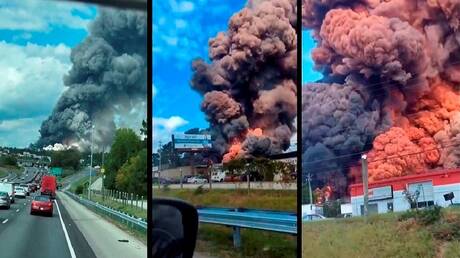 🚨عاجل| وسائل إعلام أمريكية: حريق كبير في مختبر BioLab في مدينة كونيرز بولاية جورجيا يتسبب في تصاعد عمود ضخم من الدخان في السماء.