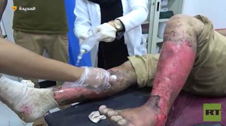 وعرضت قناة “المسيرة” اليمنية، مشاهد للجرحى الذين يتلقون العلاج بالمستشفيات، وقد تعرضوا لحروق كبيرة في الأطراف.