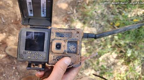 وقال الجيش في بيان حصلت RT على نسخة منه: “بتاريخ 17 أبريل 2025 وفي سياق متابعة عمليات المسح الهندسي في المناطق الجنوبية، عثرت وحدة عسكرية مختصة على جهاز تجسس مموه ومزود بآلة تصوير في خراج بلدة بليدا – مرجعيون، وعملت على تفكيكه”.