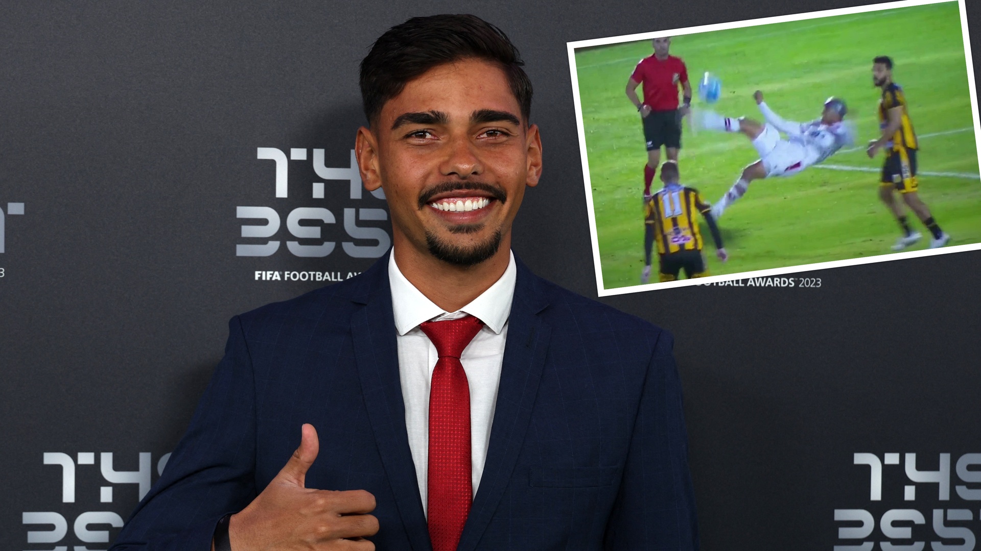 فاز البرازيلي جوليرمي مادروجا، بجائزة بوشكاش المقدمة لأجمل هدف في عام 2023، خلال حفل توزيع جوائز “ذا بيست” الخاص بالاتحاد الدولي لكرة القدم “فيفا”، مساء الاثنين في لندن.