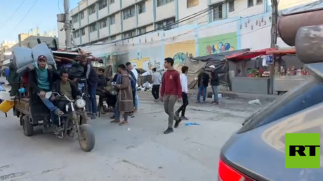 وثق مراسل RT نزوح آلاف الفلسطينيين من شرق مدينة رفح نحو غربها منذ صباح يوم الاثنين بعد تهديد الجيش الإسرائيلي وأوامر الإخلاء وأيضا الغارات الجوية التي طالت مناطق شرقي المدينة.
