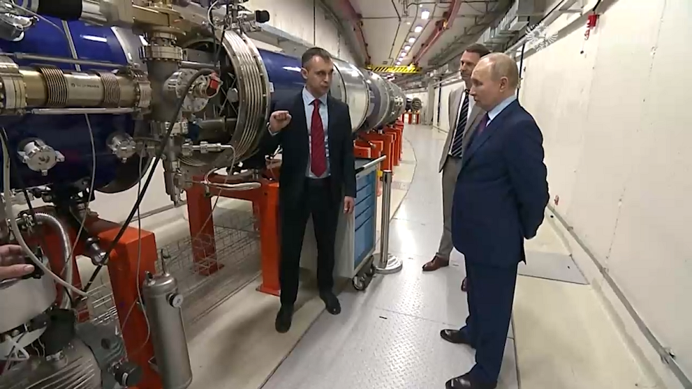 تفقد الرئيس الروسي فلاديمير بوتين اليوم الخميس مجمع مصادم “NICA” في المعهد الروسي للبحوث النووية بمدينة دوبنا بضواحي موسكو.