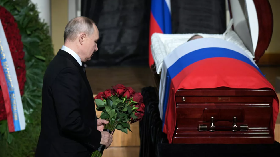 الرئيس الروسي فلاديمير بوتين أثناء مراسم وداع رئيس المحكمة العليا فياتشيسلاف ليبيديف 28 فبراير 2024