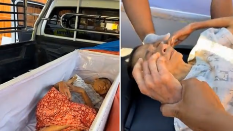 واستيقظت تشونثيروت البالغة من العمر 65 عاما فجأة، وبدأت تدق بيدها على غطاء النعش، فيما كانت عائلتها تستعد لمراسم الجنازة. وتظهر لقطات مصورة المرأة الضعيفة وهي تتحرك داخل التابوت، وتحاول إبعاد الذباب عن وجهها، بينما كان أفراد عائلتها واقفين في ذهول لا يصدقون ما يرون.
