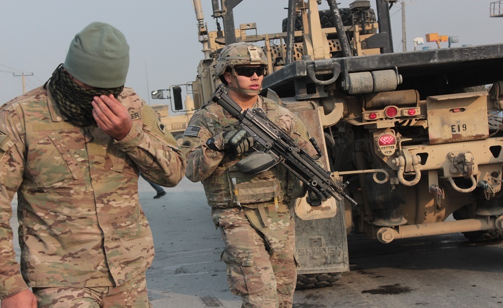 جنود من قوات أمريكية في أفغانستان في أعقاب تفجير استهدف رتلا لهم سنة 2015