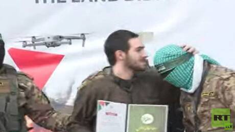 أقدم أحد الأسرى الإسرائيليين الثلاثة الذين أفرجت عنهم حماس اليوم السبت بإطار الدفعة السابعة من صفقة التبادل عل تقبيل رؤوس عناصر من كتائب القسام كانوا يرافقونه، في خطوة لافتة.