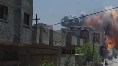 كما وثقت المشاهد تصاعد ألسنة اللهب والدخان جراء القصف القوي للمنطقة.