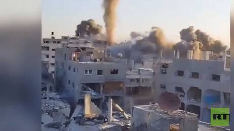 تداولت وسائل الإعلام فيديو يظهر جنودا إسرائيليين يوثقون تفجير المباني السكنية في منطقة جباليا شمالي قطاع غزة.