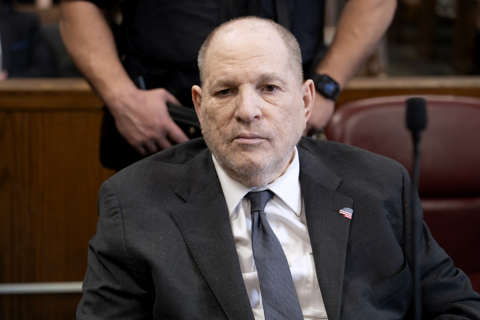 وكان المنتج المسجون، الذي جلس ببدلة مجعدة على كرسي متحرك، قد أُدين في الأصل باغتصاب مان في عام 2020، لكن المحكمة العليا في الولاية ألغت الحكم لاحقا، مما مهد الطريق لمحاكمة ثانية انتهت حينها بعدم قدرة هيئة المحلفين على اتخاذ قرار (Hung jury).
