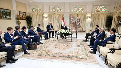 رئيس مجلس القيادة الرئاسي في اليمن رشاد العليمي خلال لقائه وزير خارجية بريطانيا ديفيد كاميرونتابعوا RT على