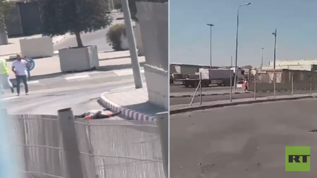 وأظهر مقطع فيديو، جنود الجيش الإسرائيلي يحتجزون عمال وسائقي الشاحنات في موقع عملية إطلاق النار على معبر الكرامة.