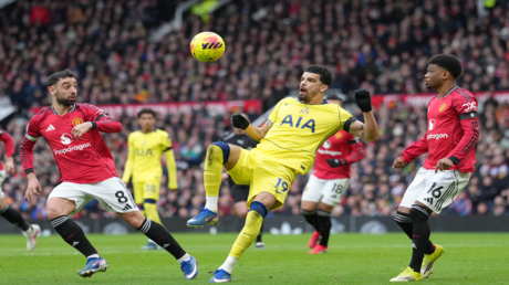 وتلقى توتنهام ضربة موجعة في الشوط الأول بعدما حصل مدافعه الأرجنتيني كريستيان روميرو على بطاقة حمراء لتدخله العنيف على كاسيميرو، لاعب مانشستر يونايتد.