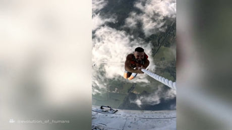 مغامر روسي يتسلق على حبل معلق بطائرة قبل أن يقفز منها بالمظلة
